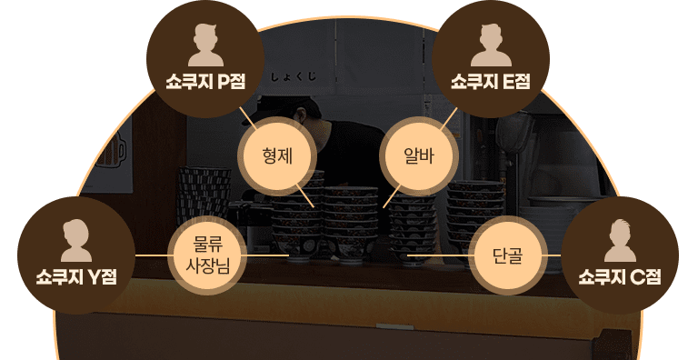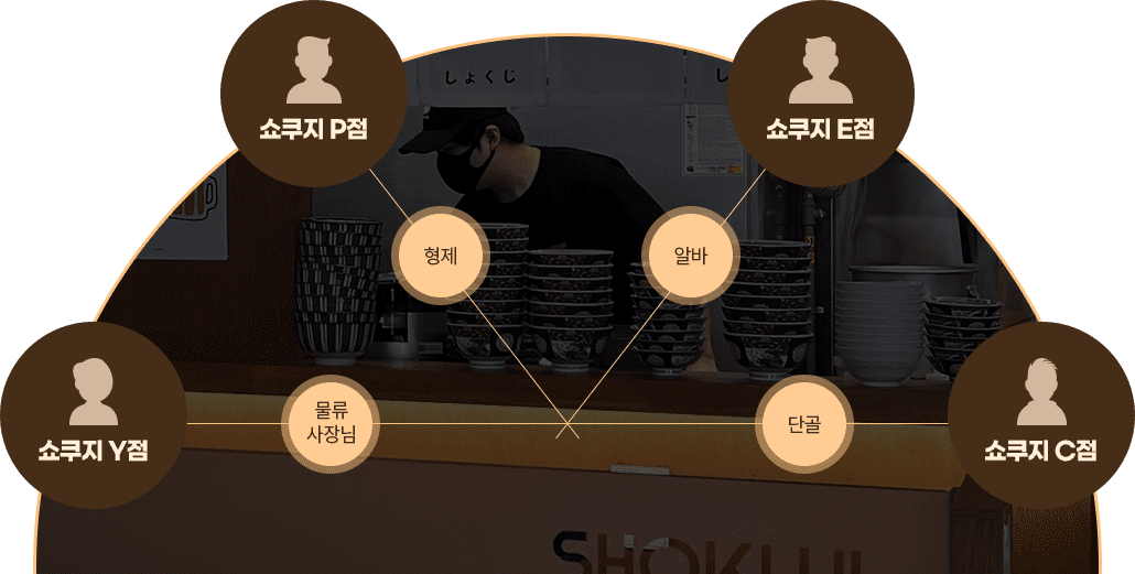 쇼쿠지의 성공 전략은 모두 가맹점주분들에 있습니다.