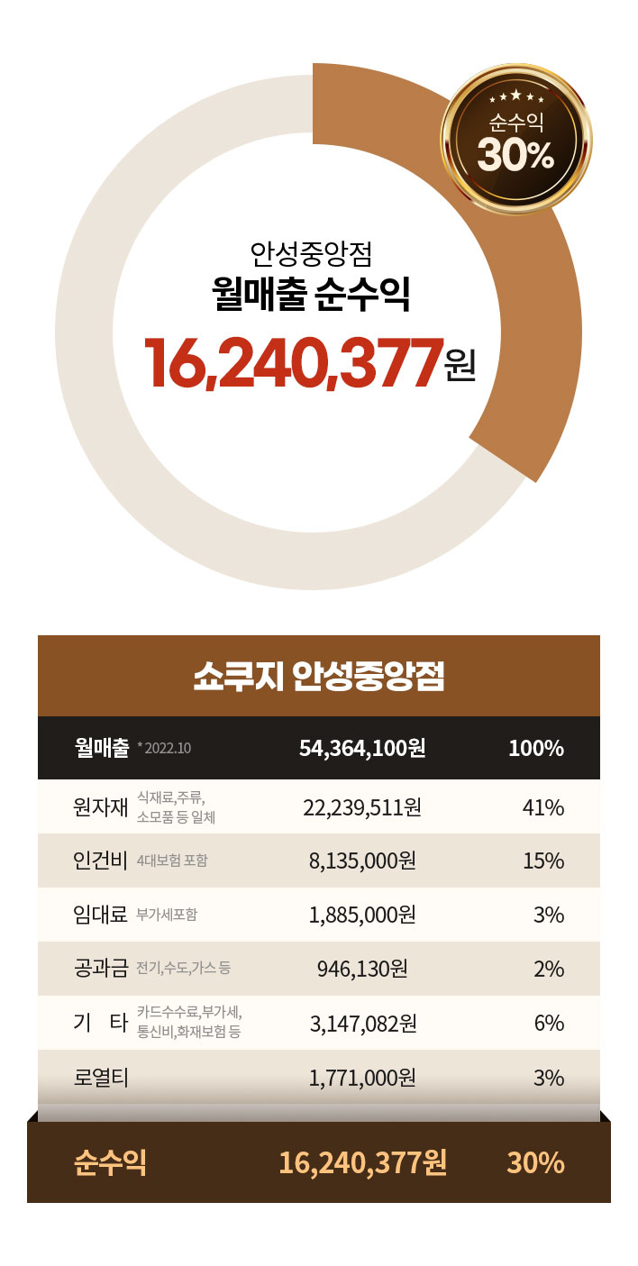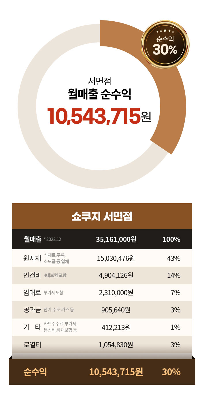 운영난이도를 대폭 낮춰 인건비 절감을 통해 평균 약 30% 수익을 실현합니다.